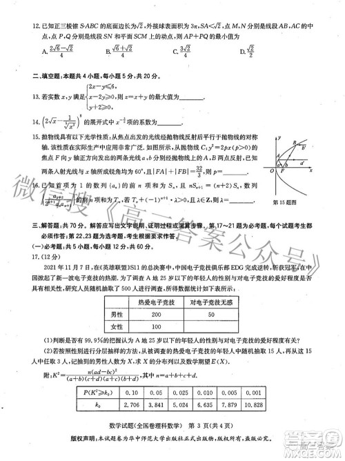 22高考理科数学真题及参考答案 全国甲卷 高考数学 22高考 真题 新浪教育 新浪网